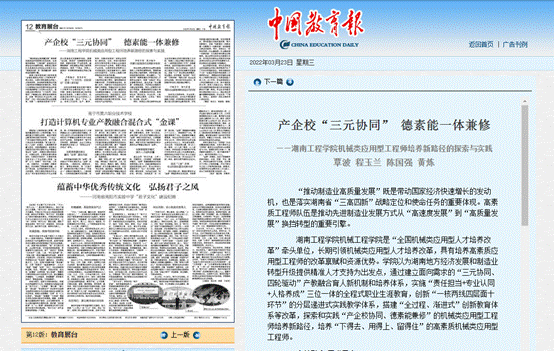 新葡萄8883官网AMG官网是“全国机械类应用型人才培养改革”牵头单位,长期引领机械类应用型人才培养改革,具有培养高素质应用型工程师的改革禀赋和资源优势。学院以为湖南地方经济发展和制造业转型升级提供精准人才支持为出发点,通过建立面向需求的“三元协同、四轮驱动”产教融合育人新机制和培养体系,实施“责任担当+专业认同+人格养成”三位一体的全程式职业生涯教育,创新“一核两线四层面十环节”的分层递进式实践教学体系,搭建“全过程、渐进式”创新教育体系等改革,探索和实践“产企校协同、德素能兼修”的机械类应用型工程师培养新路径,培养“下得去、用得上、留得住”的高素质机械类应用型工程师。