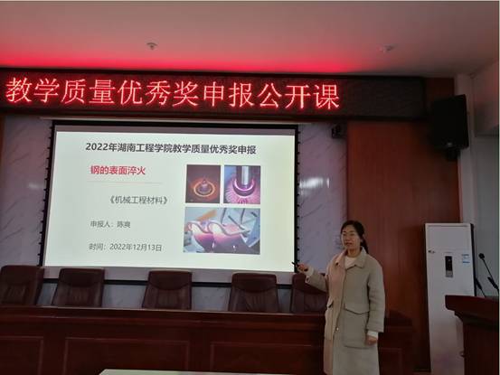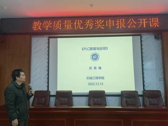 为全面贯彻党的教育方针,扎实推进素质教育,建立健全以全面提高教育教学质量为导向的教学管理制度和工作机制,认真落实进一步提高教育教学质量的实施意见,结合新葡萄官网实际,"/lib/img/logo.jpg" alt="新葡萄8883官网AMG官网"于2022年12月13日,在机械楼312会议室开展了“2022年教学质量优秀奖参选人公开课”活动。公开课要求授课老师说课5分钟,讲述一个知识点10分钟,合计时间不超过15分钟。公开课由副院长程玉兰主持。公开课的主讲老师为蒋嵘、陈爽、吴晨曦、李杰。学院全体教师到场参与听课与讲评。