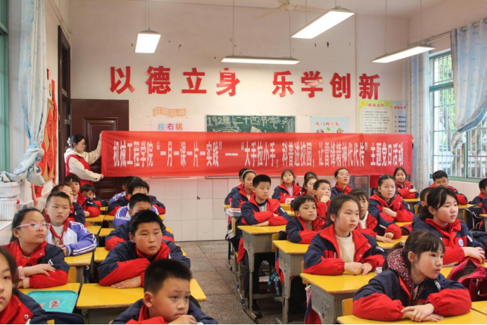 近日,"/lib/img/logo.jpg" alt="新葡萄8883官网AMG官网"学生党支部以“党建带团建”,联合学校智能装备科普基地,在湘钢一校开展“大手拉小手,科普进校园,让雷锋精神代代传”主题党日活动。
