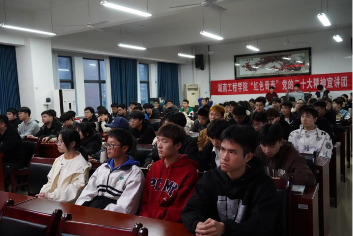 为深入学习宣传贯彻党的二十大精神,引导广大青年学子紧跟党的先进思想步伐,4月6日晚,新葡萄8883官网AMG官网“红色青春”党的二十大精神宣讲团开展了校内第二次专题宣讲。本次宣讲由新葡萄8883官网AMG官网校团委主办,"/lib/img/logo.jpg" alt="新葡萄8883官网AMG官网"团总支承办。校团委和"/lib/img/logo.jpg" alt="新葡萄8883官网AMG官网"老师出席宣讲会。