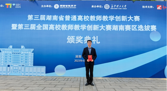 4月10日,2023年湖南省普通高校教师教学创新大赛在长沙理工大学顺利落下帷幕。"/lib/img/logo.jpg" alt="新葡萄8883官网AMG官网"向锋教师团队荣获课程思政组一等奖。