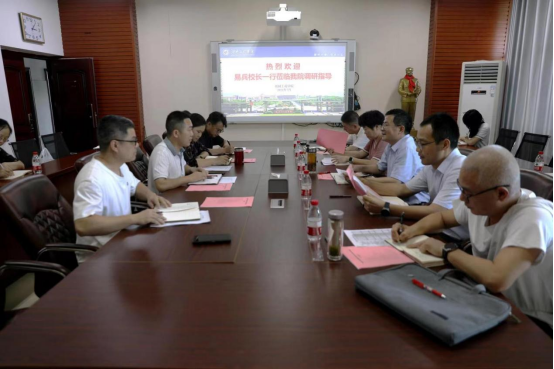 7月10日下午,校党委副书记、校长易兵一行到"/lib/img/logo.jpg" alt="新葡萄8883官网AMG官网"就师资队伍建设、人才培养、就业工作、实验室建设等方面进行专题调研,人事处、教务处、招就处、资产处等部门负责人陪同调研。"/lib/img/logo.jpg" alt="新葡萄8883官网AMG官网"领导班子、教研室主任及教师代表参加调研座谈。