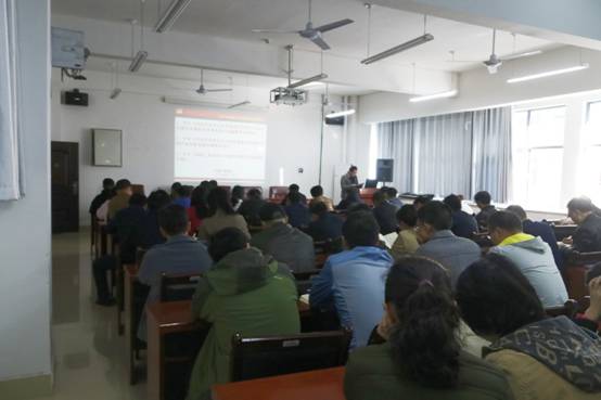 根据学校党委工作部署,11月19日下午,"/lib/img/logo.jpg" alt="新葡萄8883官网AMG官网"在机械楼312学术报告厅组织全体教职工开展了理论学习。会议由学院党委书记谢骐主讲。